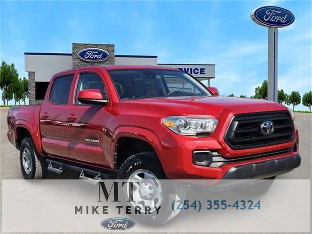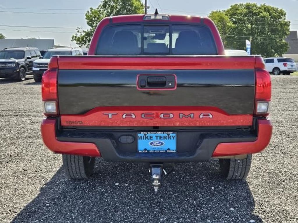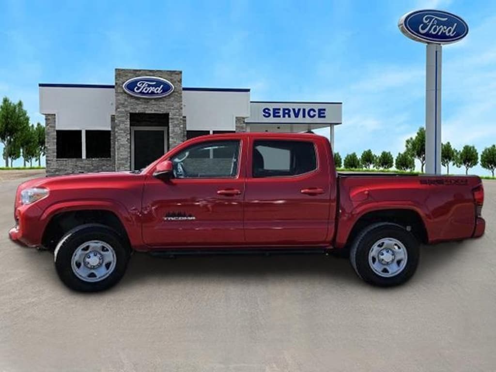 CERTIFIED PRE-OWNED, Tacoma SR5 V6, Ford CPO Off Brand Certified, 4D Double Cab, 3.5L V6 PDI DOHC 24V LEV3-ULEV70 278hp, 6-Speed Automatic, 4WD, Red, ABS brakes, Air Conditioning, AM/FM radio: SiriusXM, Anti-whiplash front head restraints, Apple CarPlay/Android Auto, Auto High-beam Headlights, Automatic temperature control, Brake assist, Bumpers: body-color, Driver door bin, Dual front impact airbags, Dual front side impact airbags, Electronic Stability Control, Emergency communication system: Safety Connect with 1-year trial, Front anti-roll bar, Front Bucket Seats, Front Center Armrest, Front dual zone A/C, Front reading lights, Front wheel independent suspension, Illuminated entry, Knee airbag, Low tire pressure warning, Occupant sensing airbag, Outside temperature display, Overhead airbag, Overhead console, Passenger door bin, Power door mirrors, Power steering, Power windows, Rear step bumper, Speed control, Speed-sensing steering, Split folding rear seat, Steering wheel mounted audio controls, Tachometer, Telescoping steering wheel, Tilt steering wheel, Traction control, Variably intermittent wipers, Tacoma SR5 V6, 4D Double Cab, 3.5L V6 PDI DOHC 24V LEV3-ULEV70 278hp, 6-Speed Automatic, 4WD, Red.